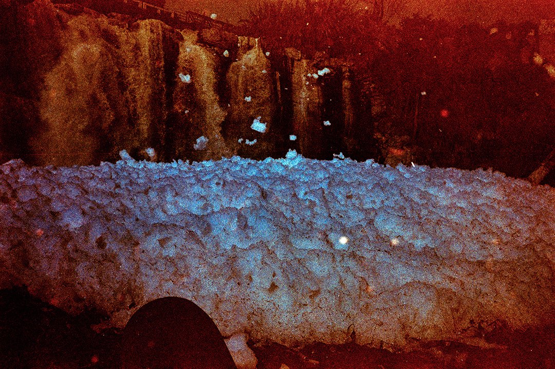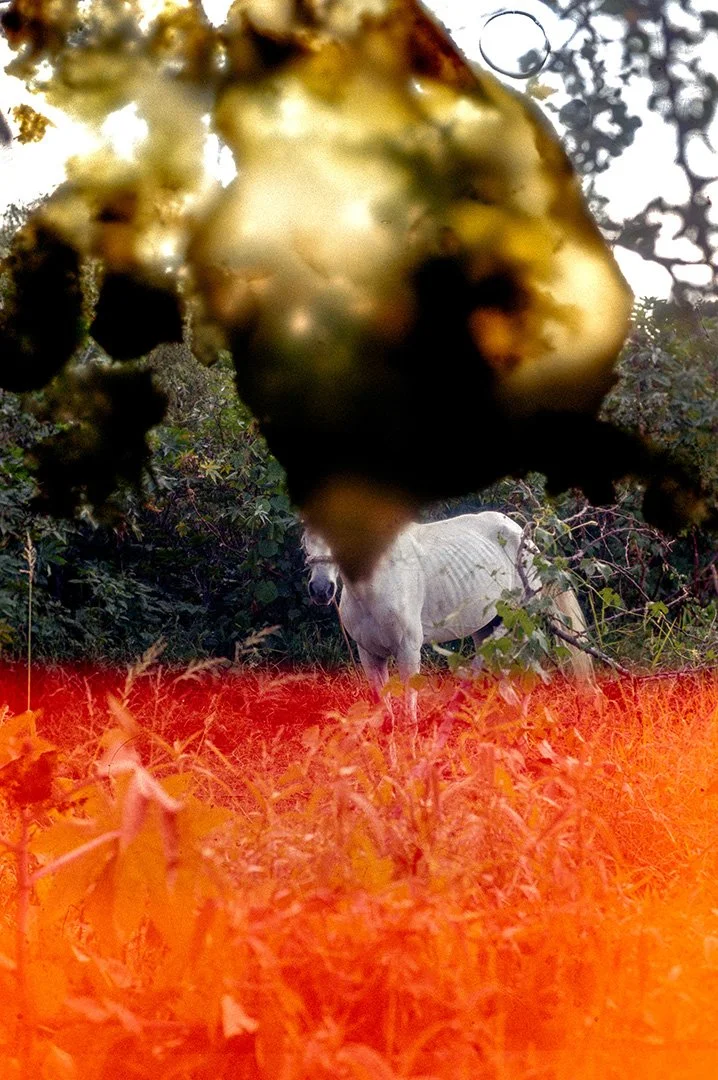 Algunas fotografías de esta serie fueron realizadas sumergiendo rollos de película análoga en el agua del Río Santiago por meses, para después ser reveladas. Los químicos descomponen y modifican el material celuloso de los negativos, generando nuevas imágenes que combinan trazos de la fotografía original con elementos inesperados.